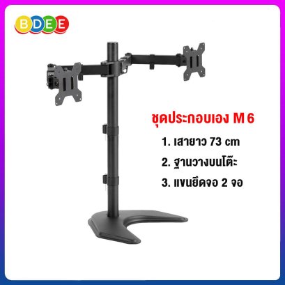 ชุดประกอบเอง (M6) เสายาว 73 ซ.ม.+ฐานวางบนโต๊ะ+แขนยึดจอมอนิเตอร์ 2 จอ (ติดจอมอนิเตอร์ขนาด 13-32 นิ้ว คู่กันได้ 2 จอ) วัสดุเป็นเหล็กพ่นสีอบความร้อนอย่างดี รูปทรงสวยงาม งานปราณีต เรียบร้อย