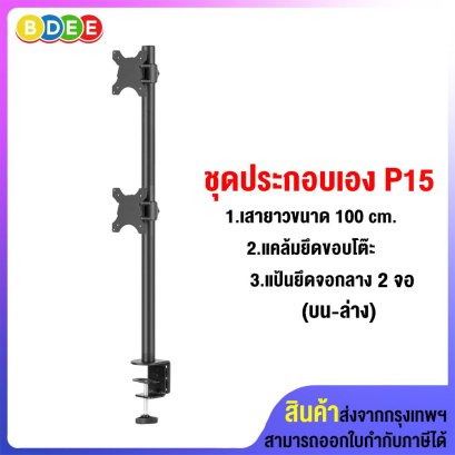 ชุดประกอบเอง เสายาว 100 ซ.ม.+แคล้มยึดขอบโต๊ะ+แป้นยึดจอมอนิเตอร์ 2 จอ (แบบยึดติดกับเสา) วัสดุเป็นเหล็กพ่นสีอบความร้อนอย่างดี รูปทรงสวยงาม งานปราณีต เรียบร้อย