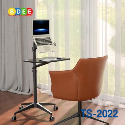 ขาตั้งโน๊ตบุ๊ค/แท็บเล็ต/จอคอม (เลือกติดทีละอย่าง) แบบตั้งพื้นมีล้อเลื่อน พร้อมชั้นวาง BDEE รุ่น TS-2022 (มีตัวจับให้ 3 แบบ) สามารถใช้ยึดจอมอนิเตอร์ ขนาด 14-32 นิ้ว หรือยึดอุปกรณ์วางโน๊ตบุ๊ค ขนาด 10-17 นิ้ว หรือใส่อุปกรณ์จับมือถือ และแท็บเล็ต ขนาด 3.5-12.9 นิ้วได้ มีชั้นวางของทำจากไม้ MDF หนา 1.5 ซ.ม. ตัวฐานมีล้อเลื่อนทำให้เคลื่อนย้ายได้สะดวก ล้อสามารถล็อคได้ทั้ง 4 ล้อ เสาสามารถปรับความสูงได้ และแขนสามารถเลื่อนขึ้นลง ส่ายซ้ายขวา โครงสร้างวัสดุเป็นอลูมิเนียมอัลลอย ออกแบบได้สวยงาม งานปราณีต เรียบร้อย ดูดีมีระดับ เหมาะเป็นเฟอร์นิเจอร์หรู ประดับห้องต่าง ๆ