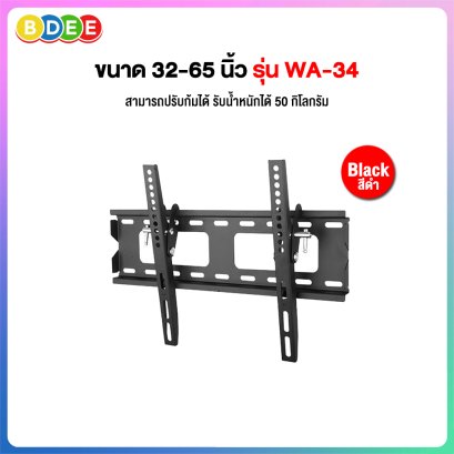 ขาแขวนที่วี BDEE รุ่น WA-34 เป็นขาแขวนทีวีติดผนัง แบบปรับก้มได้ ใช้กับทีวีขนาด 32-65 นิ้ว ทุกรุ่นทุกยี่ห้อ รับน้ำหนักได้ไม่เกิน 50 กิโลกรัม รองรับรูหลังทีวี แนวตั้งไม่เกิน 40 ซ.ม. และแนวนอนไม่เกิน 40 ซ.ม. ห่างจากผนัง 3.7 ซ.ม.เหล็กหนา 1.6 มิลลิเมตร น้ำหนักสินค้า 1.61 กิโลกรัม