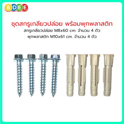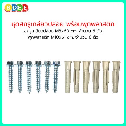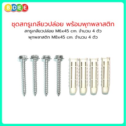 ชุดสกรูเกลียวปล่อย M6 พร้อมพุกพลาสติก M8 จำนวน 4 ตัว ต่อชุด เหมาะสำหรับการติดตั้งขาแขวนทีวี เข้ากับผนังอิฐมอญแดง ผนังปูน ผนังพรีแคส ผนังคอนกรีต หรือผนังไม้ คุณสมบัติเด่น สามารถใช้งานได้กับผนังเกือบทุกประเภท