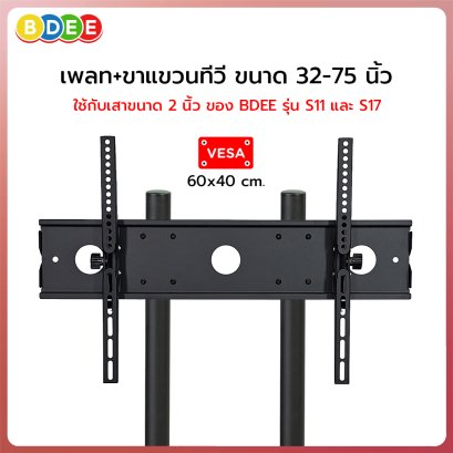 อะไหล่ (80) เพลท + ขาแขวนทีวี 32-75 นิ้ว ใช้กับเสาขนาด 2 นิ้ว 2 เสา (ขนาดเส้นผ่านศูนย์กลางเสา 5 ซ.ม.) รองรับรูด้านหลังทีวี แนวตั้งไม่เกิน 40 ซ.ม. แนวนอนไม่เกิน 60 ซ.ม. ตัวชิ้นงานผลิตจากเหล็กพ่นสีอบความร้อนอย่างดี งานปราณีต เรียบร้อย รูปทรงสวยงาม