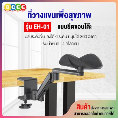 ที่วางพักแขนเพื่อสุขภาพ ใช้ขณะเวลาที่พิมพ์คีย์บอร์ดและใช้เม้าส์ ลดความเมื่อยล้าของแขน ไหล่ และข้อมือ ปรับขึ้นลงได้ 6 ระดับ แขนสามารถส่ายได้ 180 องศา ข้อพับหมุนได้ 360 องศา แท่นวางแขนหมุนได้ 360 องศา สามารถหนีบขอบโต๊ะ ความหนาไม่เกิน 5.5 ซ.ม. ใช้พื้นที่ใต้โต๊ะสำหรับตัวหนีบลึก 6.5 ซ.ม. วัสดุทำจากอลูมิเนียม เหล็ก และพลาสติคอย่างดี ขนาดกล่องบรรจุ 29x14x14 ซ.ม. น้ำหนัก 1.1 ก.ก. สินค้ารับประกัน 1 ปี ราคานี้รวมภาษีมูลค่าเพิ่มแล้ว