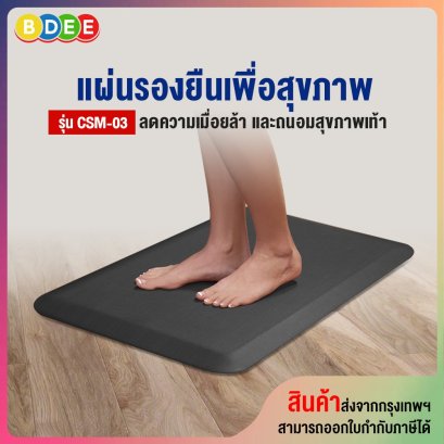 แผ่นรองยืนเพื่อสุขภาพ ลดความเมื่อยล้า และถนอมสุขภาพเท้า ทำจาก PU ขึ้นรูปทั้งชิ้น ช่วยรองรับอุ้งเท้า ช่วยกระจายน้ำหนัก ลดแรงกดทับ ดูดซับแรงกระแทกซึ่งสะท้อนกลับขึ้นไปเป็นอันตรายต่อข้อและเข่า เหมาะกับท่านที่ต้องยืนทำงานอยู่กับที่นาน ๆ เช่น ยืนทำกับข้าว ล้างจาน รีดผ้า แคชเชียร์ พนักงานขาย ฯลฯ อีกทั้งยังเหมาะกับเด็กและคนชราอีกด้วย