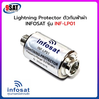 Lightning Protector (ตัวกันฟ้าผ่า) INFOSAT รุ่น INF-LP01 เป็นอุปกรณ์ที่ใช้สำหรับป้องกันฟ้าผ่าเข้าทีวี หรือกล่องรับสัญญาณ ทำหน้าที่เปรียบเสมือน Fuse โดยตัดไฟฟ้าแรงสูงที่ไหลย้อนทางมาเกินจากเสาอากาศทีวี หรือ จานดาวเทียม โดยสามารถติดตั้งได้ที่เสาดิจิตอล, หัวรับสัญญาณจานดาวเทียม หรือหลังกล่องรับสัญญาณ