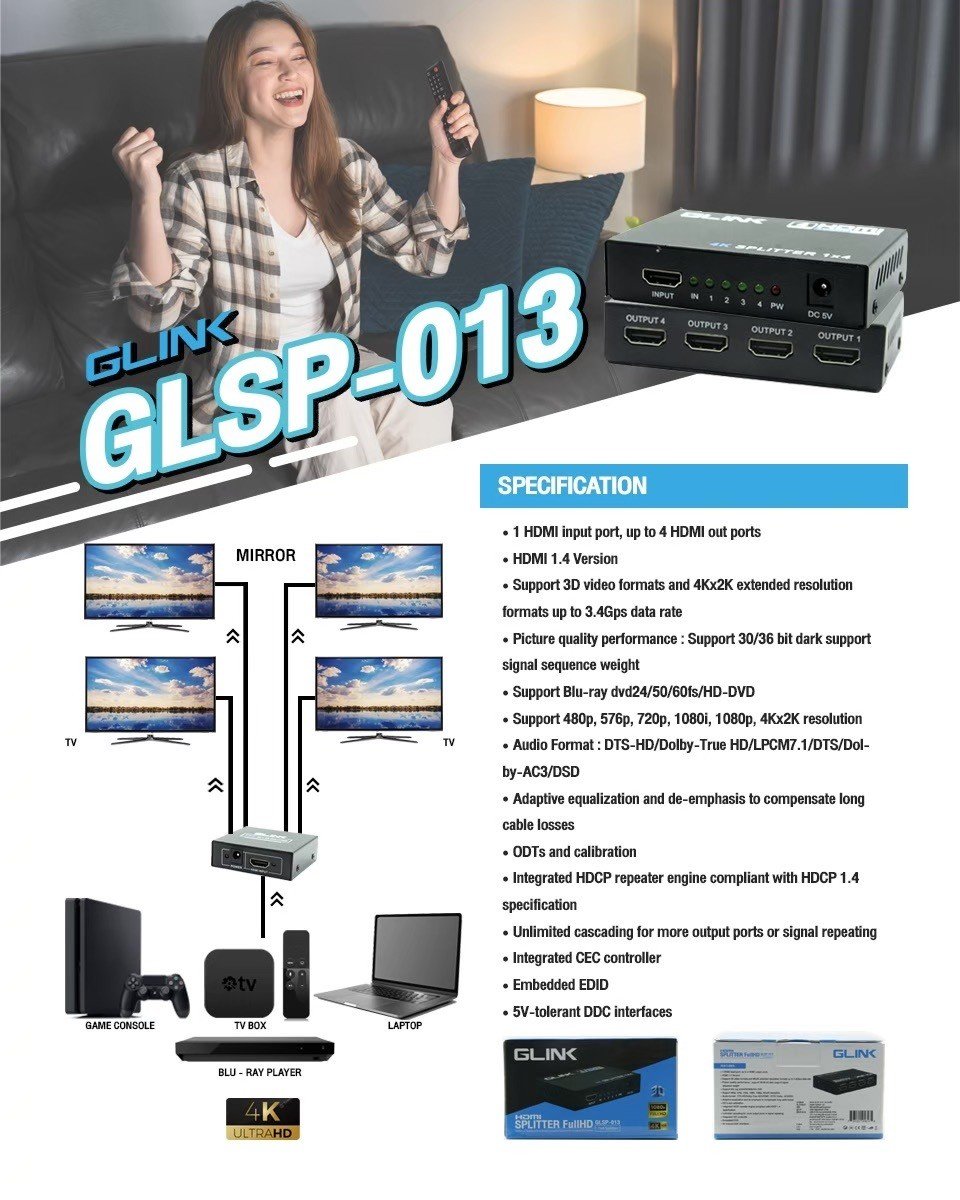 GLINK HDMI SPLITTER (4K) GLSP-013 (ตัวแยก HDMI เข้า 1 ออก 4)