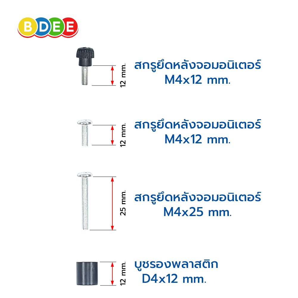 - สกรูยึดหลังจอมอนิเตอร์ ขนาด M4x12 มม. จำนวน 4 ตัว