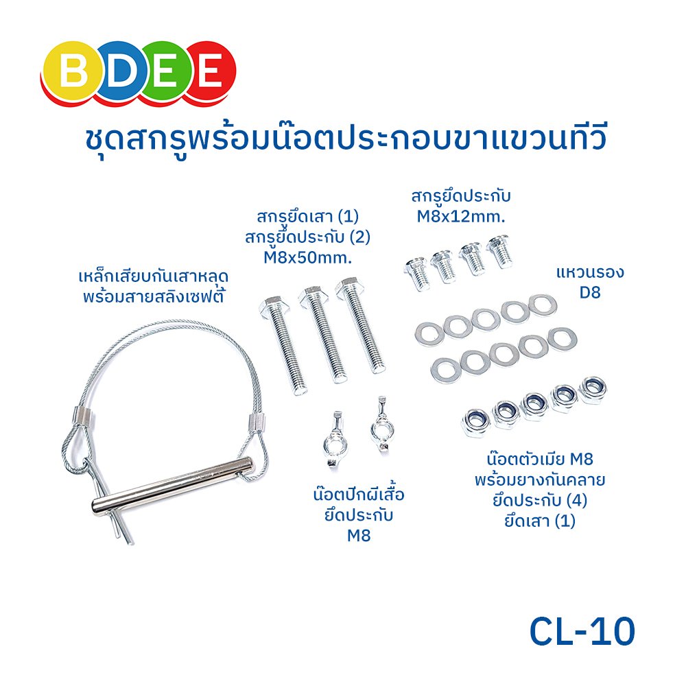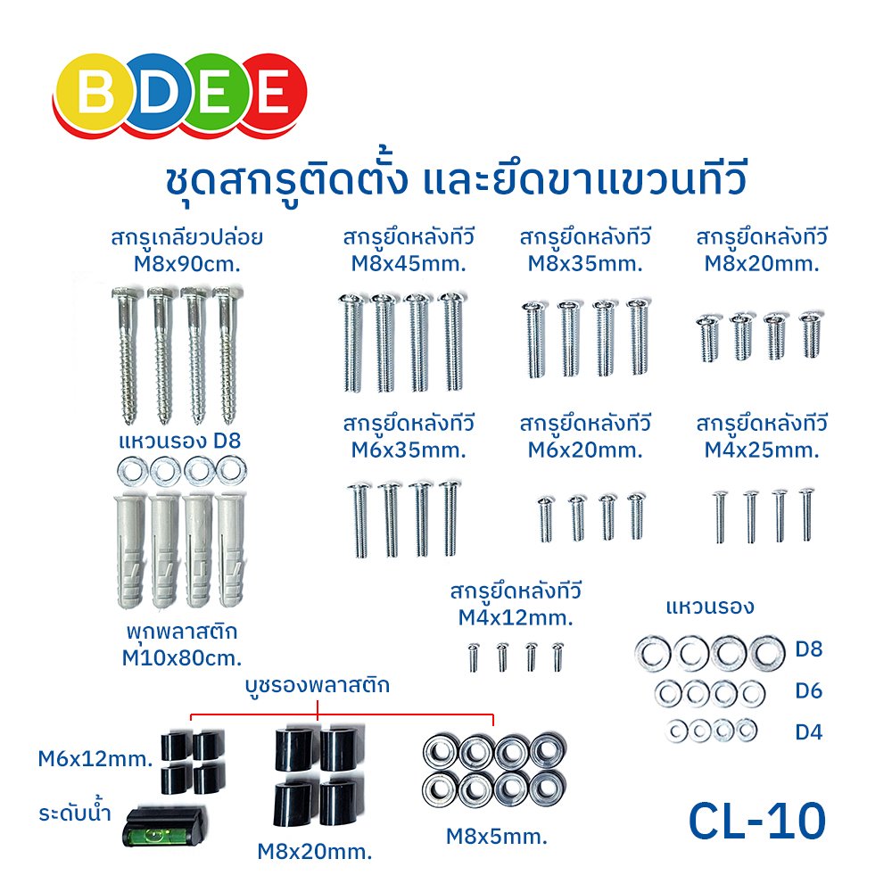 - มีชุดอุปกรณ์สำหรับการติดตั้ง รวมถึงน็อตยึดหลังทีวีให้ทุกรุ่น ทุกยี่ห้อ