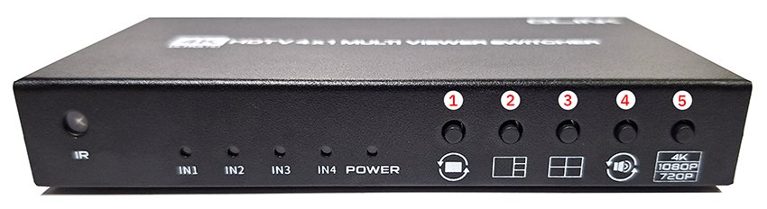 ปุ่มหมายเลข 1 กดเพื่อสลับภาพ HDMI ขาเข้า กด 1 ครั้งจากภาพขาเข้า IN1 → ไปภาพขาเข้า IN2 → เวียนไปจนถึงภาพขาเข้า IN4 และจะวนกลับมาเป็นภาพขาเข้า IN1