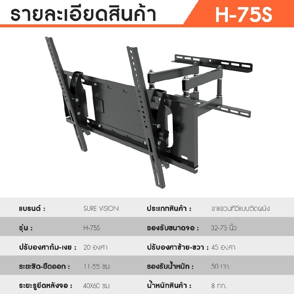 *** แนะนำใช้กับทีวีขนาด 32-75 นิ้ว ที่มีรูด้านหลัง แนวตั้งไม่เกิน 40 ซ.ม. แนวนอนไม่เกิน 60 ซ.ม. และน้ำหนักไม่เกิน 50 กิโลกรัม